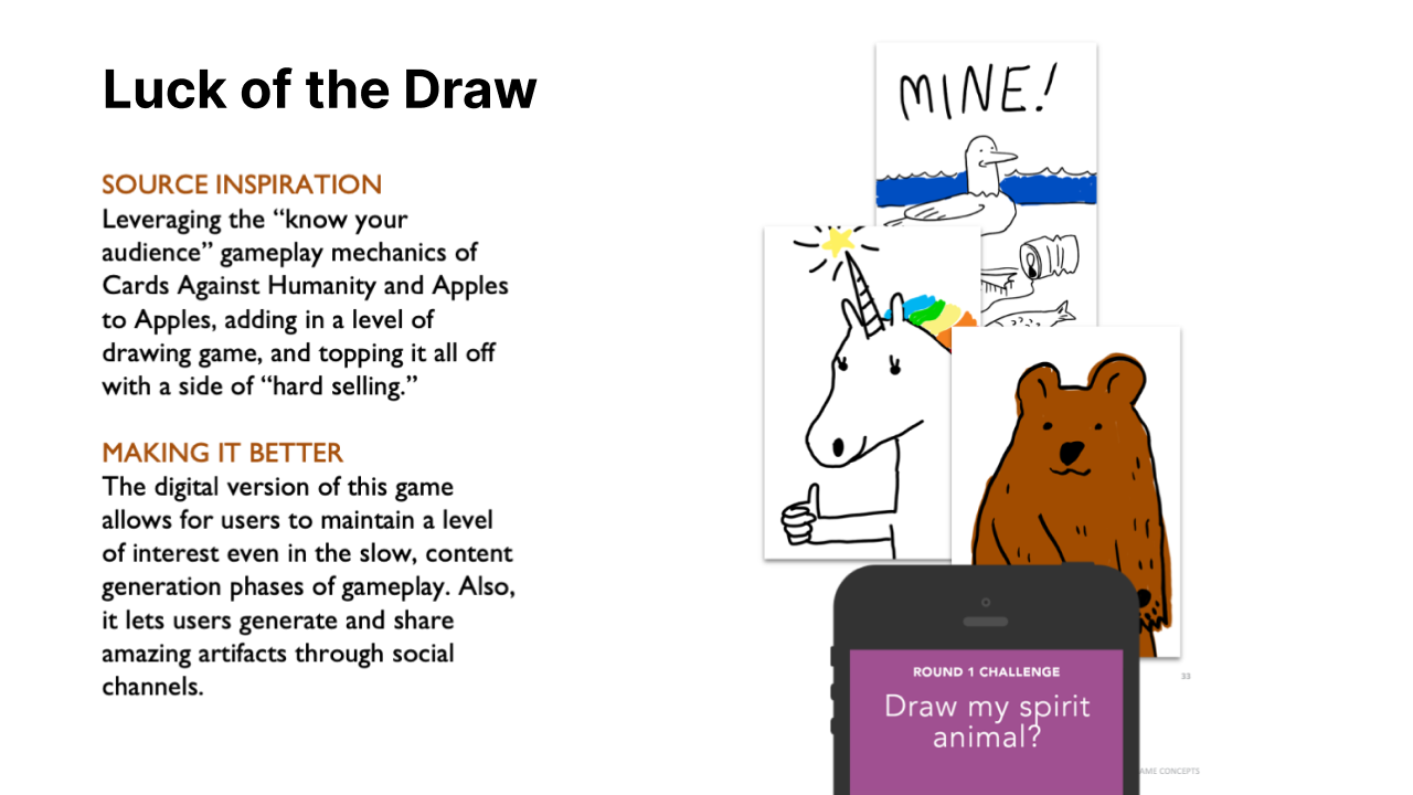 Two of the concepts, Psych! and Draw It, were chosen to move forward to production design.
