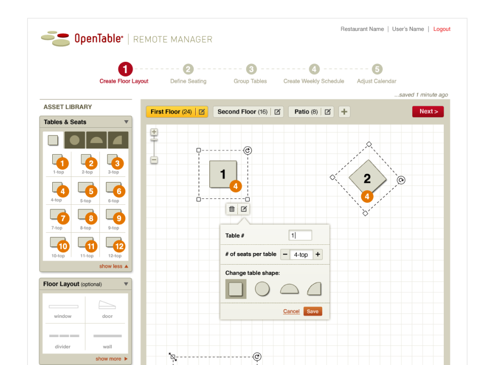 - Created a drag-and-drop floorplan builder that mirrored the physical restaurant layout