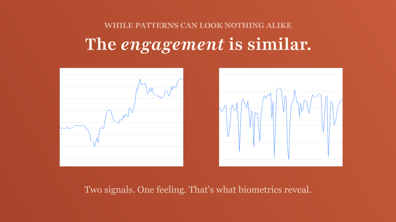 We started with streams of biometric signals — EDA, heart rate, HRV, ECG — flowing across clean, precise line charts. To researchers, they were rich with meaning. To marketers, they were unreadable.