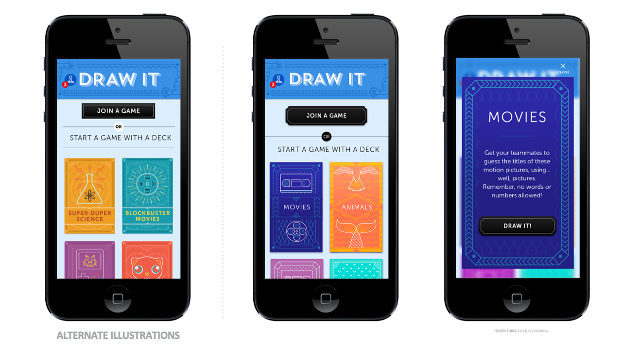 Two of the concepts, Psych! and Draw It, were chosen to move forward to production design.