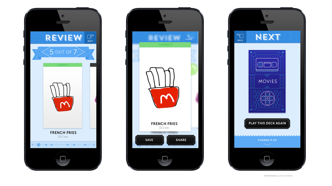 We presented a number of game concepts that we had prototyped to the Ellen executive producer team. All of them had been extensively game tested to ensure they were entertaining and technically viable.