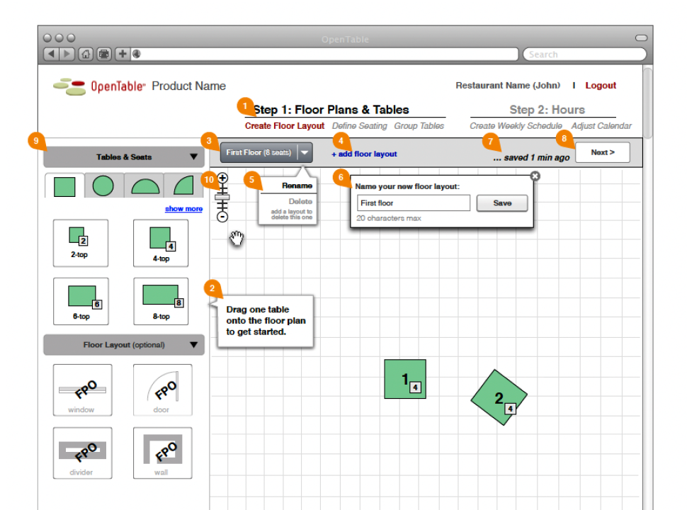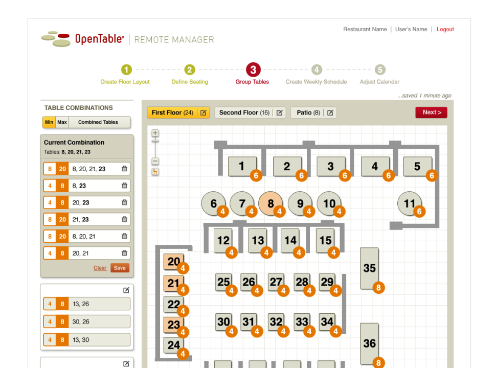 - Created a drag-and-drop floorplan builder that mirrored the physical restaurant layout